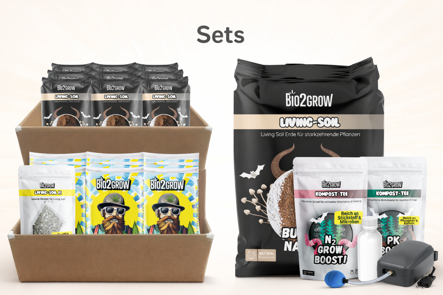 Sets, Beete, Erden und Nährstoffe perfekt geeignet für dein Living Soil System.