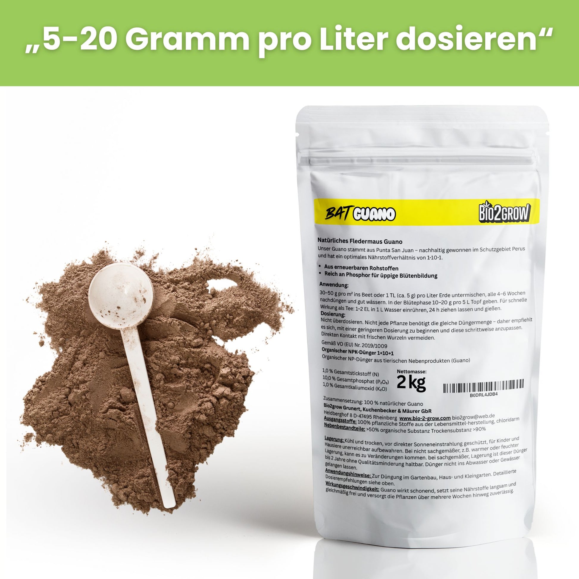 Vorteile auf einen Blick: Fördert ein vitales WurzelwachstumVerbessert die Bodenfruchtbarkeit auf natürliche WeiseUnterstützt kräftige und widerstandsfähige PflanzenHoher Phosphorgehalt für prächtige BlütenbildungSchonend für die Umwelt dank 100 % organischer HerkunftOb im Indoor- oder Outdoor-Bereich: Mit Guano Dünger erreichen Sie einen gesunden, kräftigen Wuchs und eine reiche Ernte – ganz ohne synthetische Zusätze. Ihre Pflanzen verdienen das Beste aus der Natur!